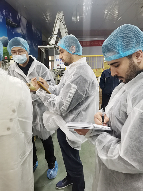 Societas repraesentativa longe hospites benigne exceptus est.Cum praecipuis ductoribus et baculo cuiusque departmentis, emptoris officinam productionem visitavit, officinam secans, officinam PVC cinematographicam cinematographicam et sarcinam inhaerentem.In visitatione, personas comitantium comitatus noster accuratam introductionem ad PVC extentionem cinematographicam praebebat et responsa professionalibus quaestionibus emptoris praebuit.